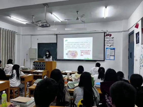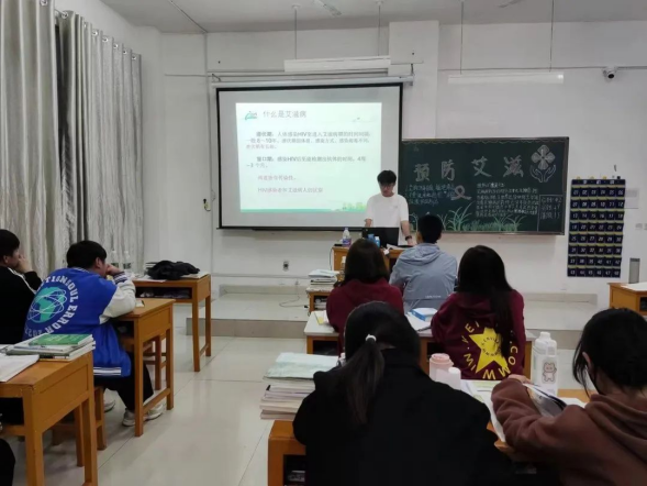 太阳集团tyc9728各班班长组成防艾知识宣讲队走进班级,以“用爱心呵护生命,以行动抵御艾滋”为主题开展班会,宣传和普及了预防艾滋病的知识。主题班会围绕“什么是艾滋病?”“艾滋病的传播途径有哪些?”“怎么有效预防艾滋”等内容展开。以PPT、视频等多种形式来普及艾滋病知识,宣传艾滋病防控。同时,呼吁同学们要关爱艾滋病群体,不歧视、不害怕、做好自我保护。