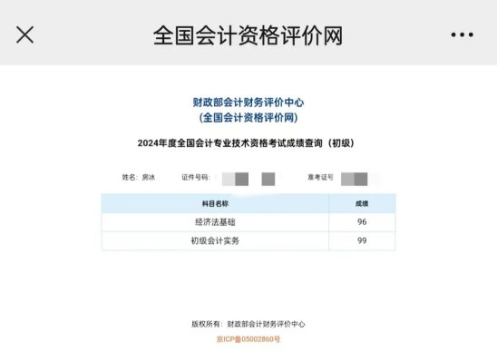 初级会计考试成功上岸!
