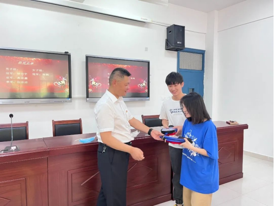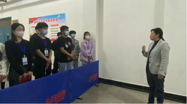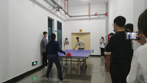 比赛结束后,刘书记和冠军选手同台竞技,随后发表讲话,勉励同学们在封校期间,增强体育锻炼,打造好“第二课堂”,劳逸结合,做德智体美劳全面发展的新时代员工。