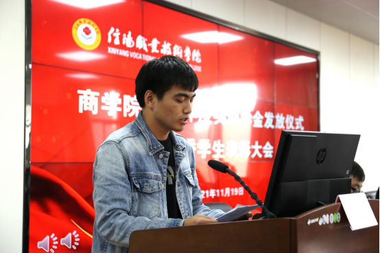 冷书记宣读获得本学年奖助学金的员工名单,领导老师们为他们颁发奖学金和助学金。国家励志奖学金获得者李凯嵽同学和受助员工代表乔燕歌同学分别发言,他们表示奖助学金代表了国家和社会对老员工的鼓励与期待,体现了党和政府对高校家庭经济困难员工的关怀和期望,切实解决了受助员工经济上的困难,他们将不忘初心,心怀感恩,立志成才。