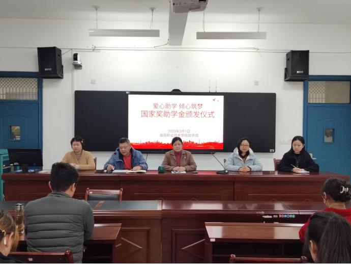 早春细雨润物无声,真情帮扶温暖人心。为贯彻落实国家资助政策,培养员工感恩意识,太阳集团tyc9728于2023年3月1日下午举行"爱心助学 倾心筑梦"助学金颁发仪式。公司党总支书记刘芳、副书记冷靖、副经理王燕、学工办主任黎骊、全体辅导员及2022学年助学金获得者代表参加活动。仪式由冷靖副书记主持。