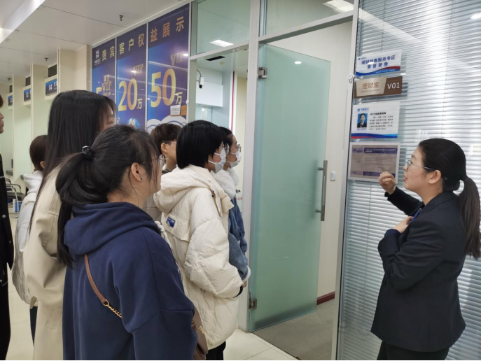 随后,由申城支行行长引导大家参观了支行厅堂,对现代化智能化的厅堂布局,以及各项高含金量的从业证书进行了介绍。