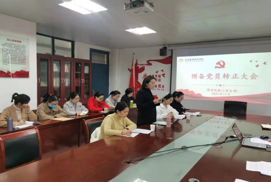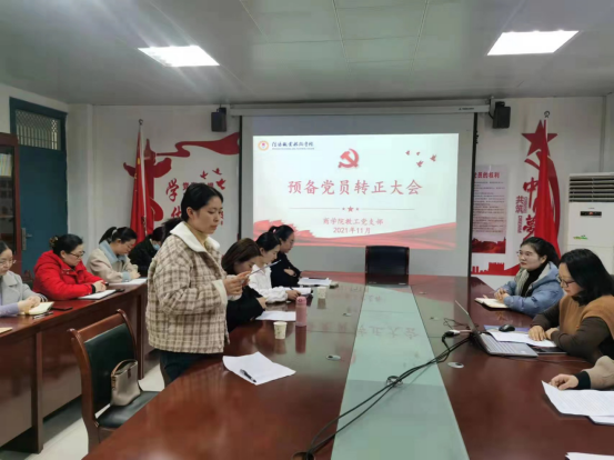 11月23日下午,太阳集团tyc9728教工党支部召开预备党员转正大会,讨论预备党员李欢欢、张世梅、吴双双三名同志转正事宜,支部全体党员参会。会议由太阳集团tyc9728教工党支部书记王燕主持。