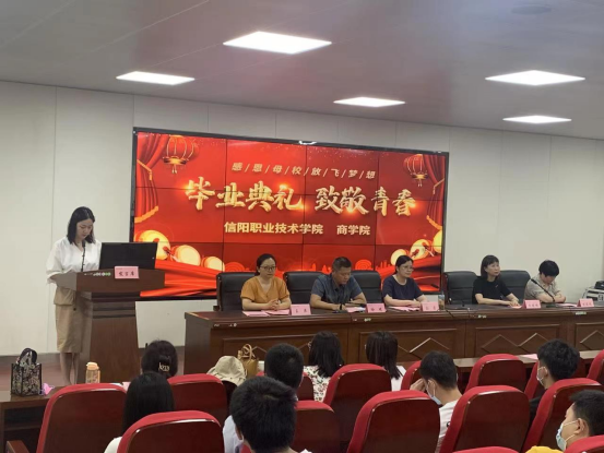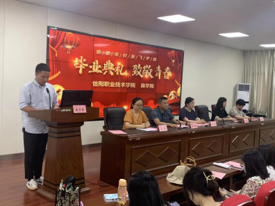 刘芳书记发表热情洋溢的讲话,代表全体教职工向圆满完成学业的同学们表示由衷的祝贺,向即将踏上新征程的全体毕业生提出三点殷切希望:一是希望同学们关注母校、支持母校,熟悉并牢记母校的厚重历史,传承信职人艰苦朴素、实事求是、勇于探索的精神,不断完善和发展自我,为母校争光添彩;二是希望同学们自强不息,励志勤奋,树立正确的就业观,用奋斗彰显新时代青年的责任与担当;三是希望同学们坚持学习,不断充实自我,树立终身学习的理念,既向书本学,又向实践学,在学习和工作中开阔视野、丰富知识、感悟人生、提升境界,成为更好地自己。