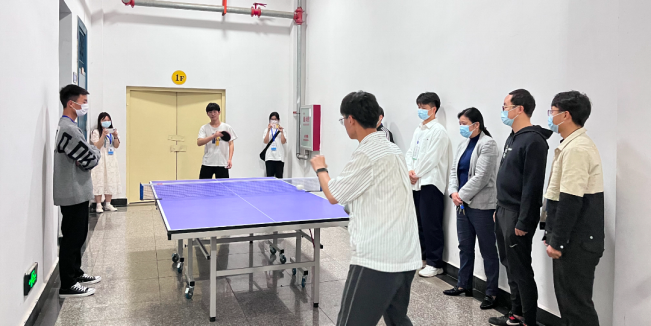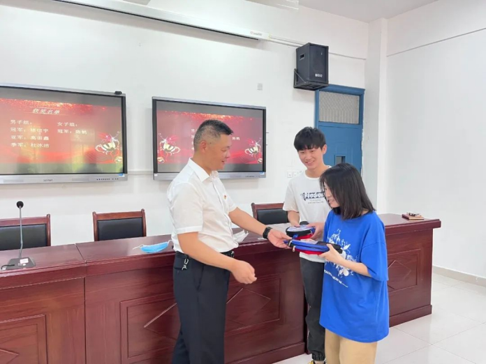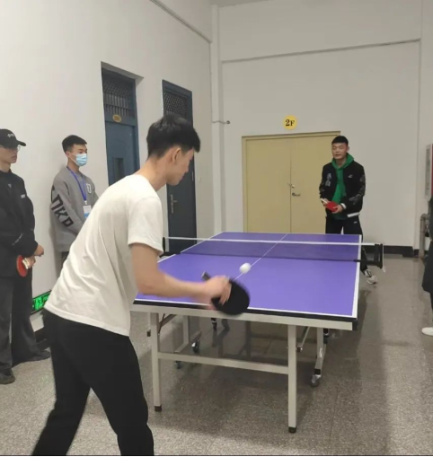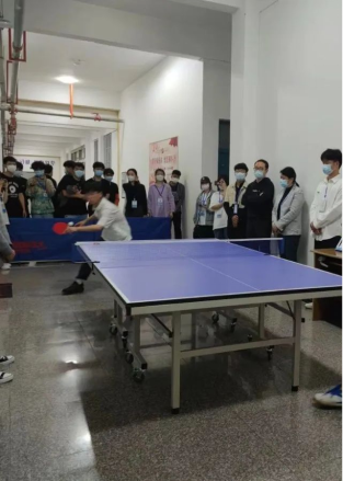 比赛结束后,刘书记和冠军选手同台竞技,随后发表讲话,勉励同学们在封校期间,增强体育锻炼,打造好“第二课堂”,劳逸结合,做德智体美劳全面发展的新时代员工。