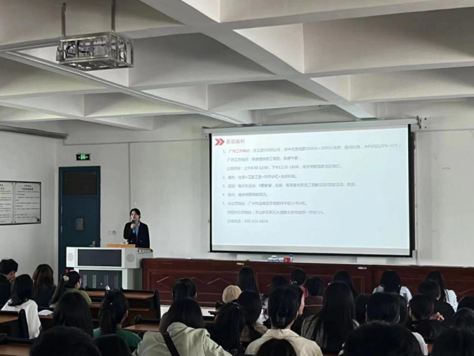 为增进员工与企业间的了解,部分企业在太阳集团tyc9728三个教室举办了12场宣讲会。企业相关负责人对应聘者的具体要求和晋升渠道进行介绍,并当场对同学们关于工作的疑问做详细的解答。