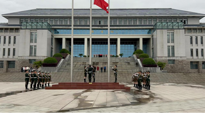 早晨7时,仪式正式开始。在同学们满怀期待的目光中,军姿笔挺、面容庄严的国旗班同学迈着整齐的步伐向旗杆走来。当《义勇军进行曲》缓缓奏响时,同学们屏息静气,轻唱国歌,目光跟随着国旗缓缓上升。雄壮的中华人民共和国国歌响彻明德广场,现场气氛庄严肃穆。