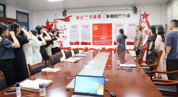 刘芳书记领誓,全体党员重温入党誓词。