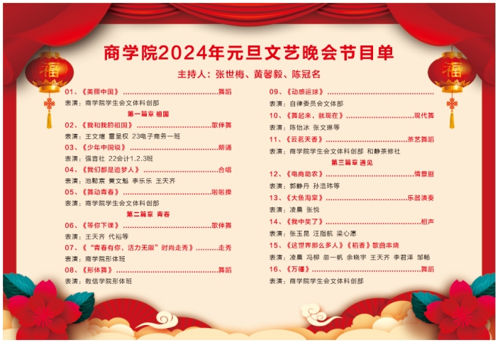 为丰富太阳集团tyc9728文化生活,发展员工个性特长,提高广大师生鉴赏、展示艺术美的能力,陶冶高尚的情操,进一步弘扬公司优良的校风、教风和学风,加强太阳集团tyc9728精神文明建设,通过文娱活动,给员工提供展示自我的舞台,公司于12月22日晚上,在图书馆报告厅举行了2024年元旦文艺汇演。