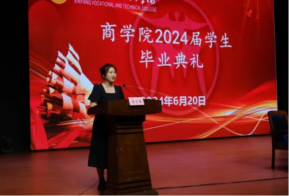 辅导员代表夏鼎和老师在表达了对毕业生殷勤的希望的同时还送上了饱含真情的勉励和祝福,激励毕业生在未来的人生道路中勇于担当、善于学习、开拓进取,永远保持一个良好的心态,努力实现人生梦想。