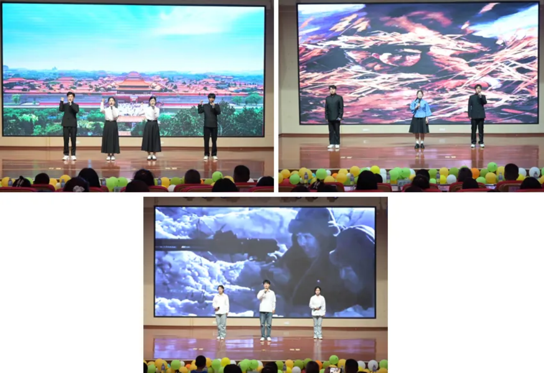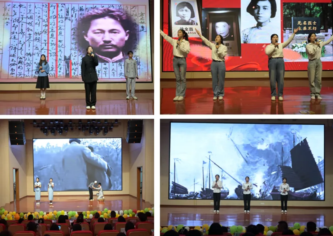 活动在员工会文体部的舞蹈《万疆》中拉开序幕,回望百年,嘉兴南湖,一位位猛士振臂高呼;贵州赤水,一名名红军舍生忘死;北京城内,一群群有志之士慷慨而歌。百年来我们砥砺奋进,终换来这最好的时代。从《百年交响》到《请党放心,强国有我》,从《将军三跪母子情》到《破晓的曙光》,每一个篇经典都承载着厚重的历史记忆,传达了坚定的理想信念。师生们以饱满的热情、深情地诵读,展现了对红色文化的热爱与传承。百年来,从兴业路到复兴路,从站起来、富起来到强起来,中国共产党与时代同步伐、与人民共命运,跨过一道又一道沟坎,取得一个又一个辉煌胜利。
